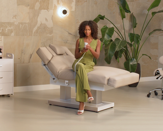 The design of the Versa Noble W4 is clean and functional. Its angular shape makes it easy to place towels or accessories on the bed during treatments. Thanks to the four motors, the Noble can also be smoothly adjusted into a comfortable seated position.